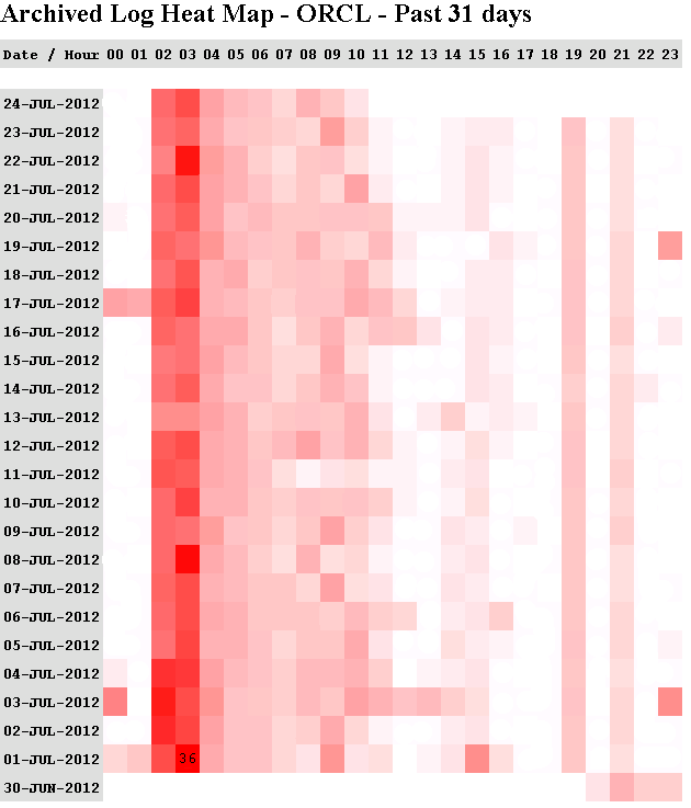 During my preparation for a visualization presentation at East Coast Oracle Users Group I realized I had an opportunity for a teaching moment on Levels of Abstraction. A few months back I published my PL/SQL code for an Archived Log Switch Heat Map.